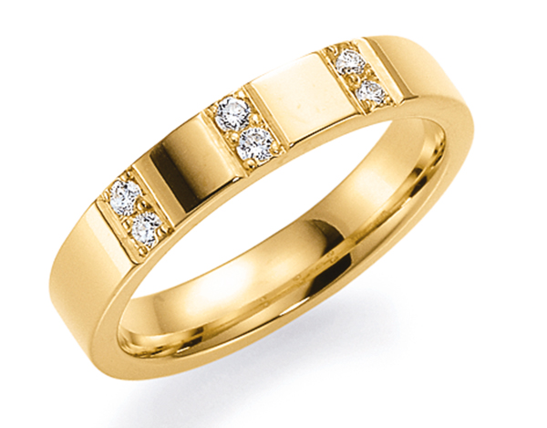 Giftering i gultgull 585, 4mm bredde, dia.0,12ct