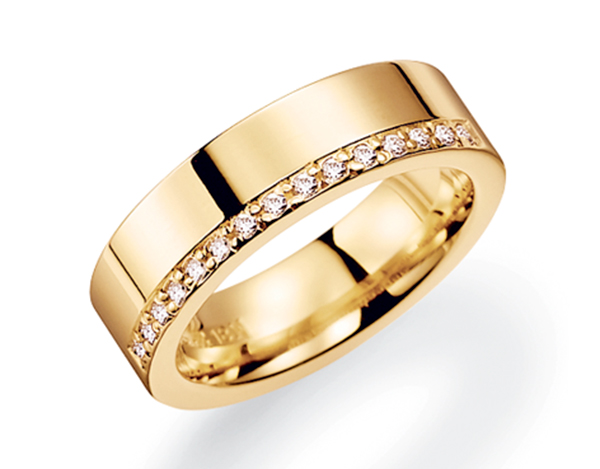 Giftering i gultgull 585, 5mm bredde, dia.0,14ct